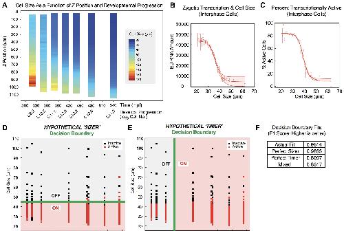 (A) Hypothetical sizer: based on activation in cells below 45 µm.