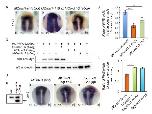 Figure 6: A form of Mcl1 that cannot be phosphorylated by Gsk3β increases the neural plate size with a higher efficiency and compensates the overexpression of the pro-apoptotic proteins XBax and hBak. (A) ISH on stage (st.) 14 embryos using probes against sox3 on embryos injected with (a) Xenopus mcl1-myc (xmcl1), (b) human mcl1 (hmcl1), (c) hmcl1S159A or (d) Xenopus bcl-xl (bcl-xl). (B) Histological sections of MOmcl1- (a) and hmcl1S159A- (b) injected embryos at stage 14 following ISH using sox3 probe and LacZ as a tracer. Blue arrow indicates the notochord. Scale bar stands for 200μm. (C) Quantification of A with addition of mouse mcl1 (mmcl1) mRNA injected embryos. (D) Alignment of human Mcl1 (isoform 1) and X. laevis Mcl1 sequences. In Mcl1 sequence the enriched region in proline (P), glutamic acid (E), serine (S) and threonine (T) residues, referred to as the âproline/glutamic acid/serine/threonine (PEST) region is shown in brown. S155, S159 and T163 shown in red are Gsk3β phosphorylation sites either confirmed in human, or putative in X. laevis. The X. laevis Bcl-2 Homology (BH) domains are shown in blue. In human Mcl1 sequence the black star indicates human S159 and the red star indicates T163. (E) Overexpression of flag-mcl1 compensates for Xbax and hbak overexpression. ISH using sox3 probe was performed at stage 14 Xenopus embryos. Four-cell stage embryos were injected in one dorsal blastomere, either with (a) Xenopus bax (Xbax), (b) Xbax and flag-mcl1, (c) human bak (hBak), and (d) hbak and flag-mcl1 (N= ) mRNAs. LacZ mRNA was used as a tracer of the injected side. Embryos are shown dorsal view anterior up. (F) Quantification of E. PNE stands for posterior neuroepithelium. White dashed lines indicate the midline. N represents the number of embryos. Relative normalized expression is indicated as means ± s.e. ** p<0.01 , *** p<0.001.