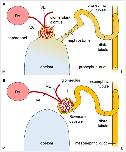 Fig. 3. Detailed architecture of a pronephric and a mesonephric nephron. A) Pronephric anatomy: the non-integrated nephron. A typical pronephric nephron, as can be found in amphibian larvae and some teleosts (Fraser 1950), consists of the following functional units; the coelom/nephrocoel with an external glomerulus or glomus, from which a ciliated nephrostome leads into the pronephric tubule that lastly drains into the pronephric duct (Fraser 1920, 1950; Dawson 1925; Lambert 1933; Davies 1950; Nieuwkoop and Faber 1994; Vize et al. 1997; Brandli 1999; Nishinakamura 2003; Raciti et al. 2008; Chimenti and Accordi 2011; Cho et al. 2011; Wessely and Tran 2011). The glomerulus or glomus is not integrated in the tubule. B) Mesonephric anatomy: the integrated nephron. The mesonephric tubules develop a Bowman’s capsule that encloses a vascularized internal glomerulus supplied by branches of the dorsal aorta (McCrory 1974). So the glomerulus is integrated in the mesonephric tubule. Bowman’s capsule, together with the internal glomerulus, constitutes a Malpighian body (Fraser 1950). The Malpighian body is regarded as a typical feature of the mesonephros (Wrobel and Suss 2000). The mesonephros differs from the pronephros by the absence of external glomeruli (Davies 1950, 1951; Nelson 1953; Hamilton et al. 1972; Vize et al. 1997; Wrobel and Suss 2000; Chimenti and Accordi 2011). The mesonephros is formed in all vertebrates, but while it degenerates and relinquishes its function to the metanephros in more advanced vertebrates, it serves as the adult kidney in fish and amphibians (Wessely and Tran 2011). DA, dorsal aorta; L, lateral; M, medial; VA, vas afferens; VE, vas efferens.