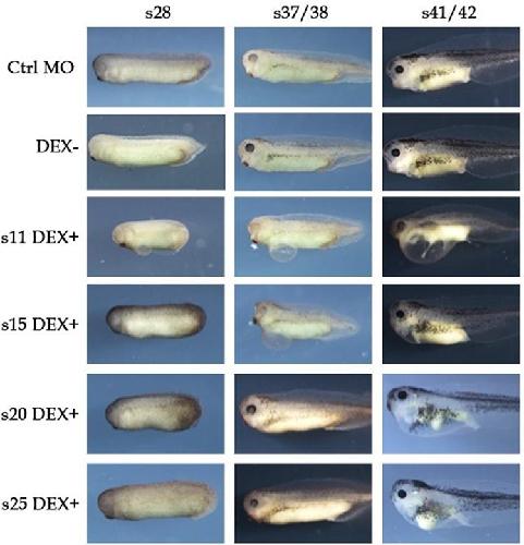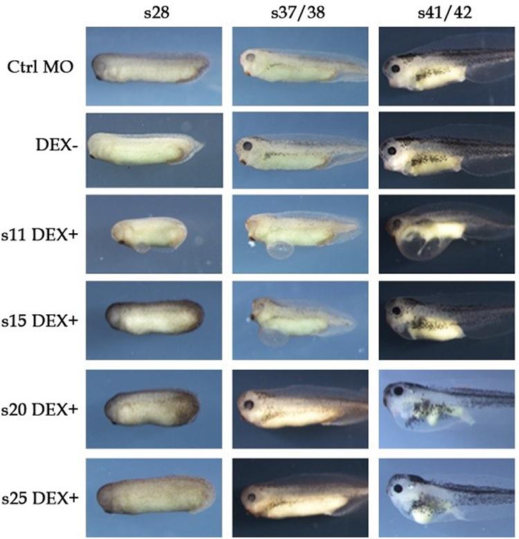 Effect of XBP1 overexpression on Xenopus embryonic development Dexamethasone was added to the culture medium at stages 11, 15, 20, and 25 to activate XBP1s-GR expression and hence induce XBP1s overexpression in specific developmental stages.