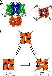 Figure 8. Coupling between voltage-dependent activation and the putative movements of the T1–T1 interfaces and the post-S6 segments. (A) Structural model of a Kv channel based on the 3D crystal structure of the Kv1.2 channel (Long et al., 2005a). The different colors depict distinct functional domains of the Kv channel: pore domain (P, blue), voltage sensing domain (VS, green; including the S4–S5 linker), and the T1 domain (T1, orange). The S1–T1 linkers (gray) connect the VS domain to the T1 domain. Dashed lines represent the approximate boundaries of the lipid bilayer. A section of the channel at the level of the internal boundary of the lipid bilayer is shown on the righthand side of the model. This view illustrates the fourfold symmetry of the channel oligomer with the S6-tails (blue) sitting just above the T1 domains and the S1–T1 linkers extending from each corner of the oligomer. (B) Two hypothetical pathways that explain the voltage dependence of the cysteine accessibility changes in the T1–T1 interface. The section shown in A (right) was used as a template to develop the schematic model of the T1 domain. The blue cylinders represent the post-S6 segments sitting on the T1–T1 interface when the pore is closed. At rest, the T1–T1 interfaces are buried. The upper pathway assumes VS domain-driven displacements of the T1–T1 interfaces via the S1–T1 linkers, which allow the concerted movement of the S6 helix bundle and the resulting opening of the pore. The lower pathway assumes the quasi-simultaneous displacements of the T1–T1 interfaces and the opening of the main S6 gate. In this case, exposing the T1–T1 interface does not depend on a propagated conformational change mediated by the S1–T1 linker. Instead, a direct interaction between the post-S6 segments and the L4 layers of T1 may drive the T1–T1 displacements as the S6 helix bundl e expands to open the pore. In both pathways, the speculative conformational changes expose the Zn2+ site cysteines in a manner that reflects the increase in conductance resulting from the opening of the main activation gate.