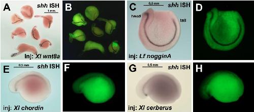 C - H – L. fluviatilis embryos injected with the indicated synthetic mRNAs showing no secondary axes.