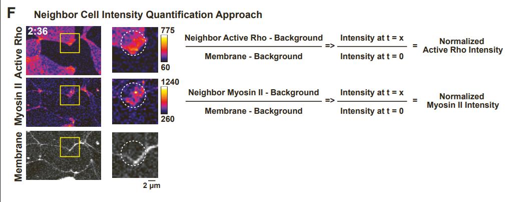 used to quantify Active Rho and F-actin intensities in neighbor cells in Figure 1F. Control cells are