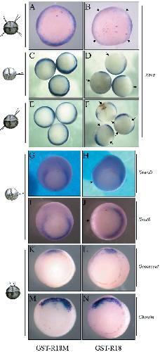 of RNA per blastomere. (M,N) GST-R18 does not inhibit chordin expression.