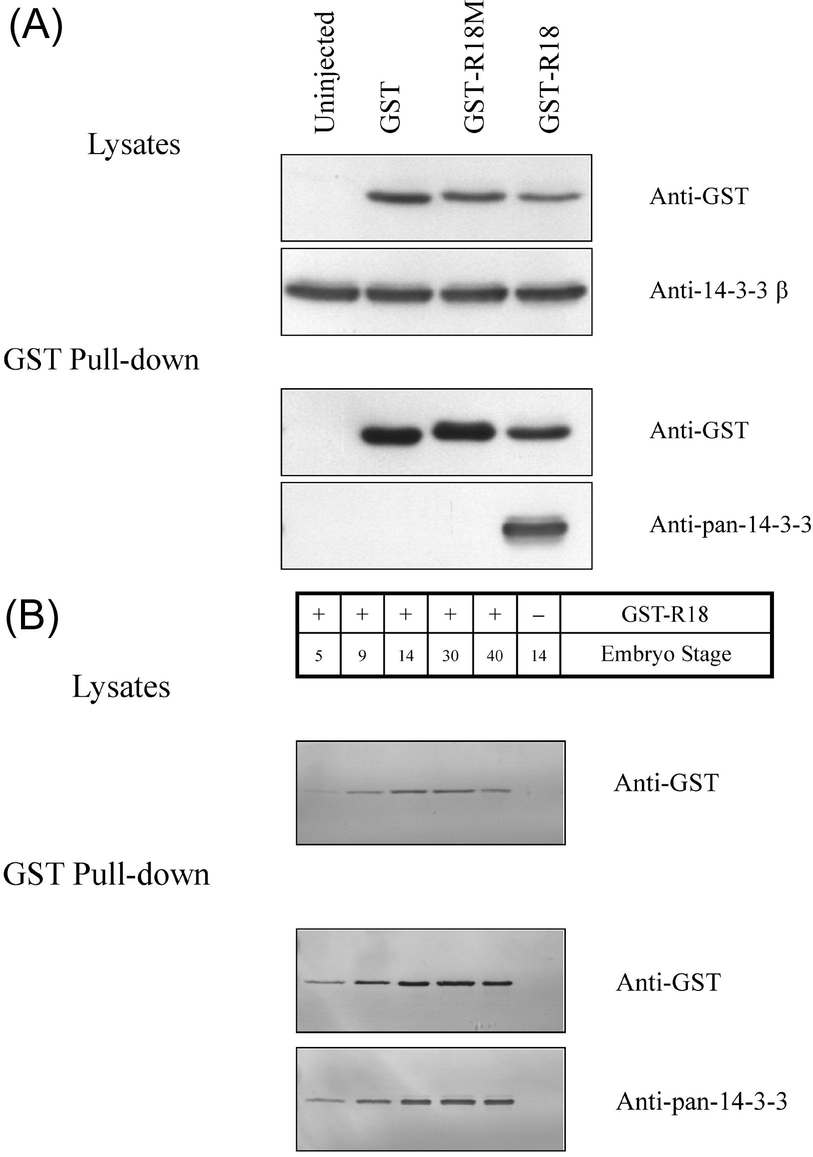 embryos. (A) GST-R18 fusion protein binds to 14-3-3 in embryos. Xenopus