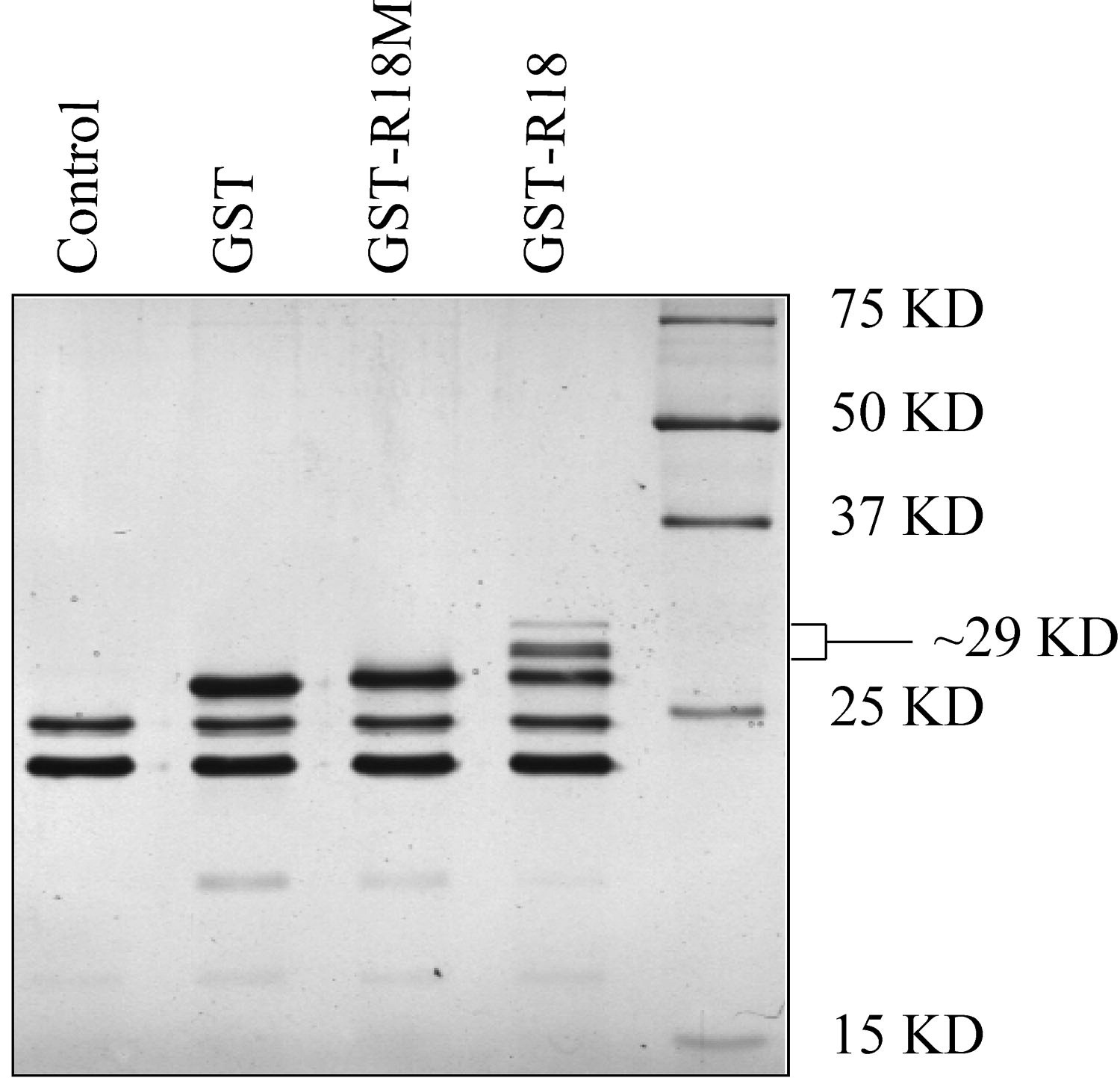3b). Note the slightly slower mobility of the GST-R18 and GST-R18M