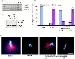 Figure 6. Immunodepleting Xgrip210 inhibits the recruitment of Xgrip109 and γ-tubulin to the sperm centrioles. (A) Blue, red, and yellow columns represent the percentage of sperm tips having γ-tubulin, Xgrip109, or Xgrip210 staining, respectively. Immunodepletion of γ-tubulin from Xenopus egg extracts (γ-tub IP) resulted in ∼70% reduction of the recruitment of γ-tubulin, Xgrip109, or Xgrip210 to the sperm tips, while the same treatment with random IgG (IgG IP) had no effect. Complementing the γ-tubulin–depleted egg extract with the 30% ASP immunodepleted with random IgG (IgG IP) restored the localization of γ-tubulin, Xgrip109, and Xgrip210 to the sperm tips, while the same treatment with anti–Xgrip210 antibodies (210 IP) had no effect. Error bars: standard deviations calculated from three independent experiments. (B) Merged images of sperm incubated in extract immunodepleted with either random IgG (IgG IP) or anti–γ-tubulin antibodies (γ-tub IP), and γ-tubulin–depleted extract complemented with either mock-depleted (30% ASP IgG IP) or Xgrip210-depleted (30% ASP 210 IP) 30% ASP. The images were pseudocolored. Sperm DNA was stained with DAPI and merged with the antibody staining of the sperm tip. In cases where the images appear to be similar, it is due to double labeling of γ-tubulin (mouse monoclonal antibody; Sigma-Aldrich) and Xgrip210 (rabbit polyclonal antibodies). Scale bar: 20 μm.